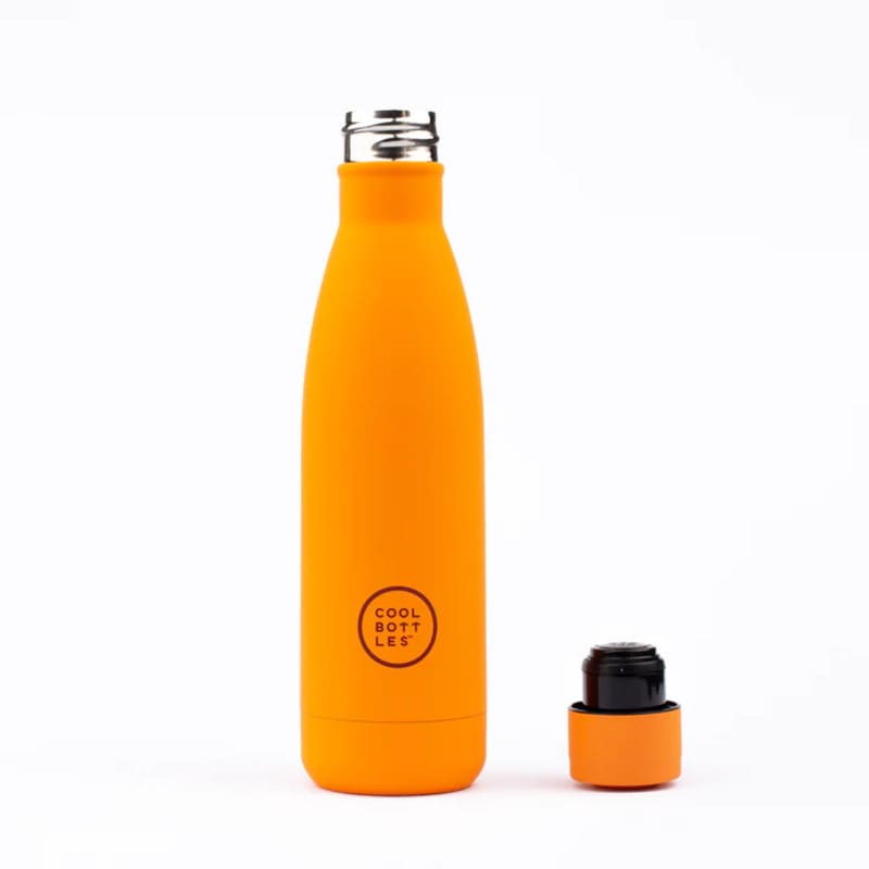 Unikátní nerezová třívrstvá termoláhev Cool Bottles Vivid Orange se sametově hebkým povrchem a víčkem stejné barvy.