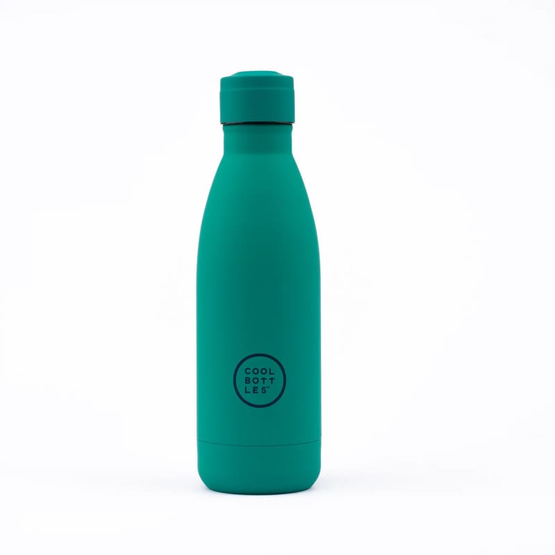 Unikátní nerezová třívrstvá termoláhev Cool Bottles Vivid Quetzal se sametově hebkým povrchem a víčkem stejné barvy.