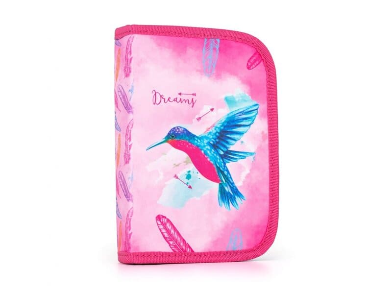 Jednopatrový penál do školy, dvě chlopně Oxybag Kolibřík růžový.