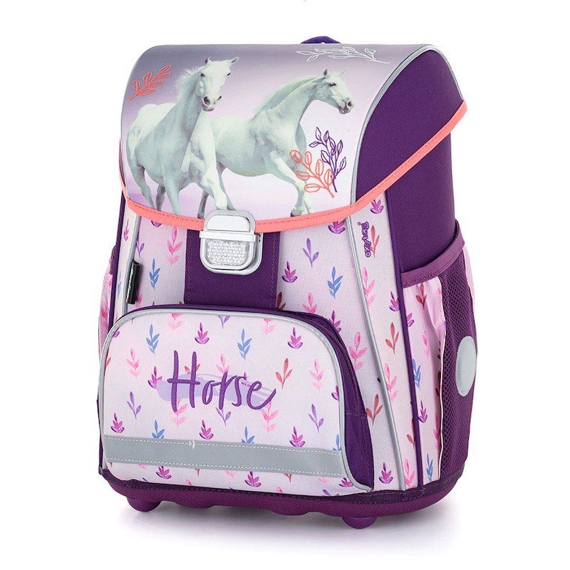 Školní aktovka v setu pro prvňáčky Oxybag PREMIUM Koně – 3 díly.Set obsahuje školní aktovku PREMIUM LIGHT, vak na záda a nenaplněný jednopatrový penál.Školní aktovka (dle výrobce Oxybag Školní batoh Premium Light – ale parametry odpovídá spíše a