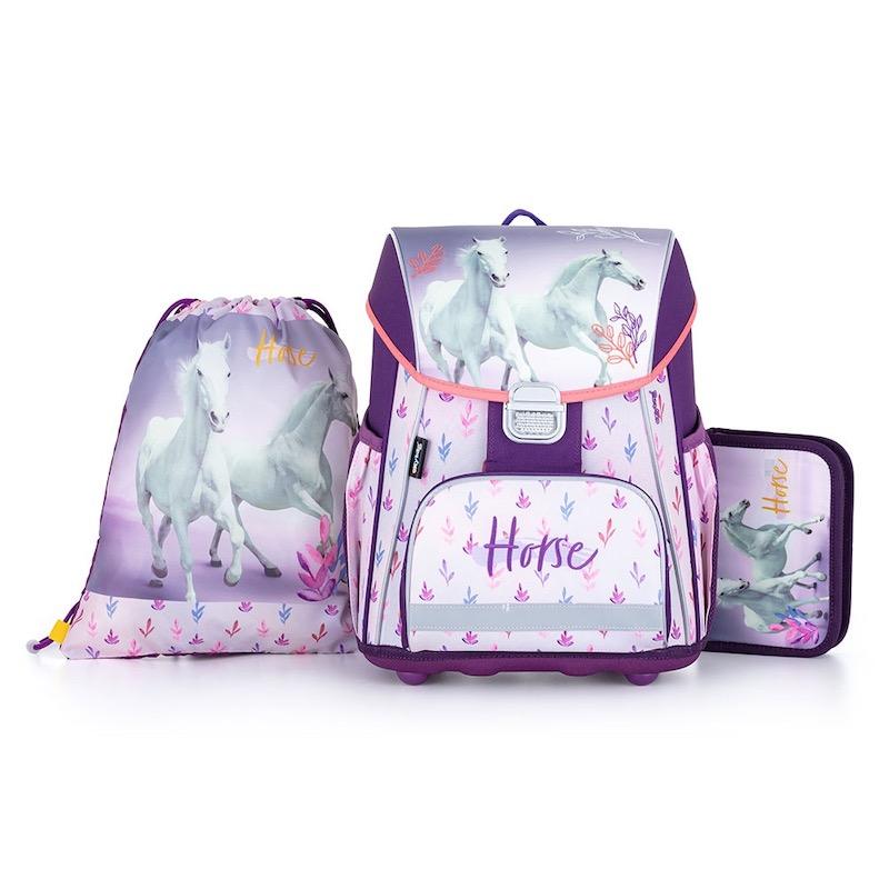Oxybag Školní aktovka v setu pro prvňáčky PREMIUM Koně – 3 díly
