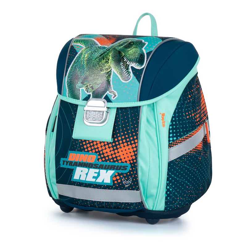 Školní set pro prvňáčka s motivem Dinosaura. Set obsahuje školní batoh Premium Light, sáček na cvičky a nenaplněný jednopatrový penál.