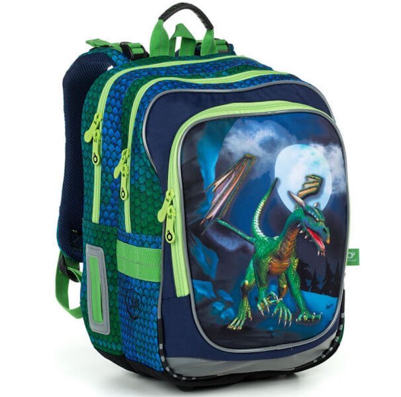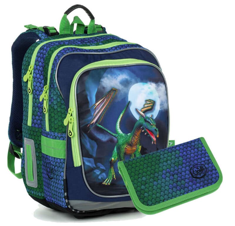 Máte doma malé cvičitelé draků? My ano! A právě pro ně jsme vymysleli tento parádní školní batoh s drakem! Je lehký jako dračí šupina (neváží ani kilogram), takže bude vyhovovat i těm nejmenším klukům s výškou pod 120 cm. Svou velikostí a objemem ale klidně vydrží až do třetí třídy.