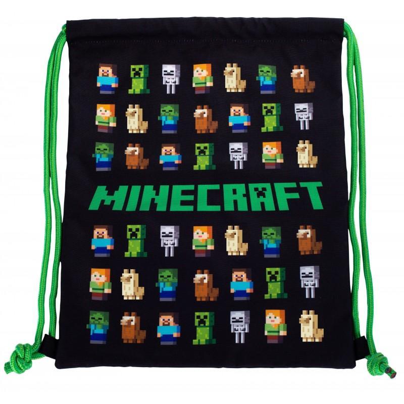 Sáček na cvičky nebo přezůvky v černé barvě v oblíbeném motivu Minecraft • Sáček na cvičky nebo přezůvky. • Zdrhování pomocí pevných tkanic, které zároveň umožňují nošení na zádech. • Rozměry: 45 x 35 cm.